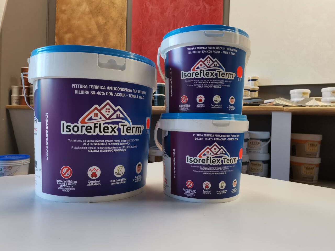 Pittura termica per interni certificata traspirante, termoriflettente inattaccabile dalla muffa.